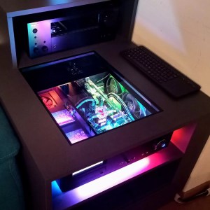 It has been a while since I last modified my HTPC in the living room. I finally had some time and a lot of RGB strips laying around. There is a total of eleven RGB strips (each having 16 rgb leds). All of them are controlled by an aquacomputer farbwerk360. I also drilled a hole into the bottom of the case in order to have some “floor” lighting. In addition all the old 12v UV-Lights have been removed. By the way, here some pictures of the “old” system: - Desk-PC 2.0 Update: Closing the gap