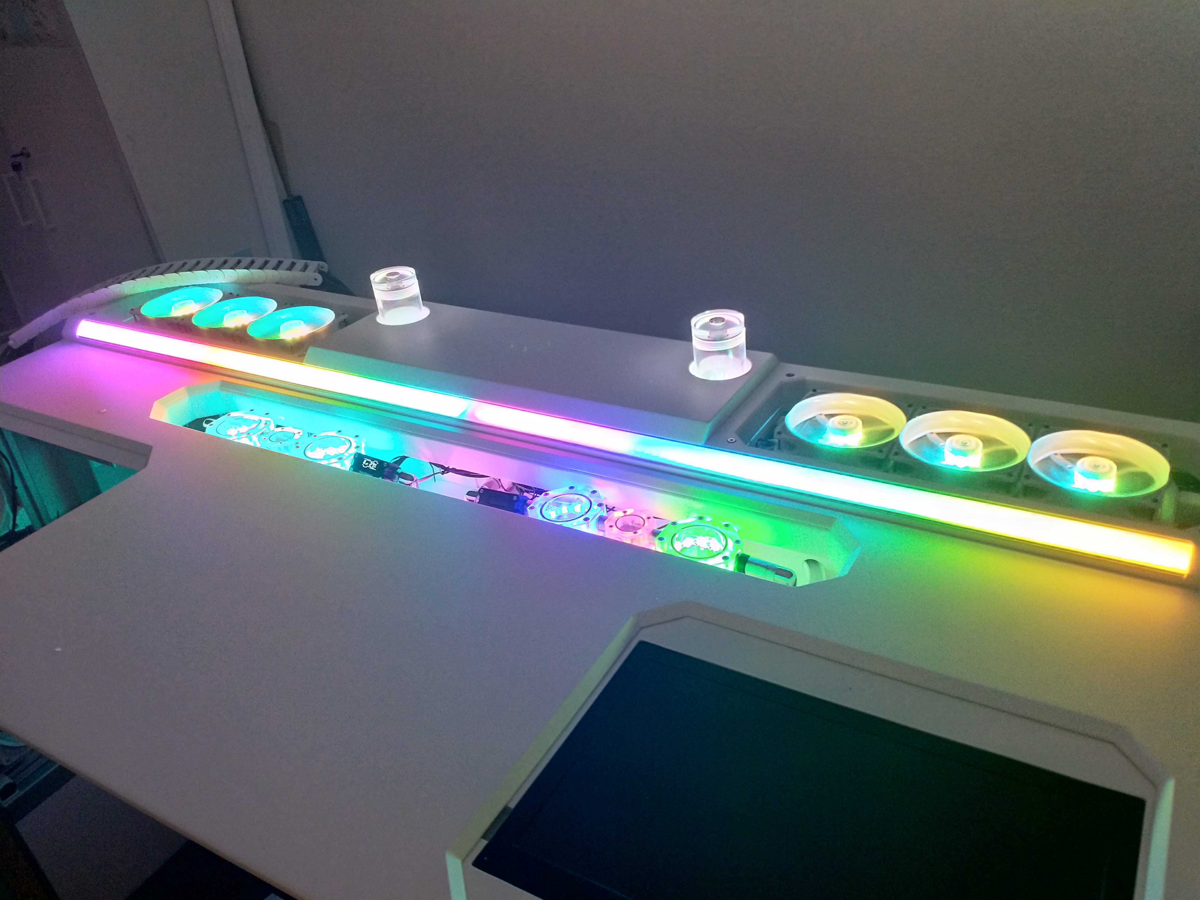 I finally received the strips I ordered via Aliexpress. Now it was up to soldering these strips you can find more about this here. After everything had been soldered I started to install the strips. At this occasion I also documented a bit how I installed the delta profile and LED diffuser on the top section of the table. Check the pictures below. I think the result looks absolutely stunning compared to the “old” version: