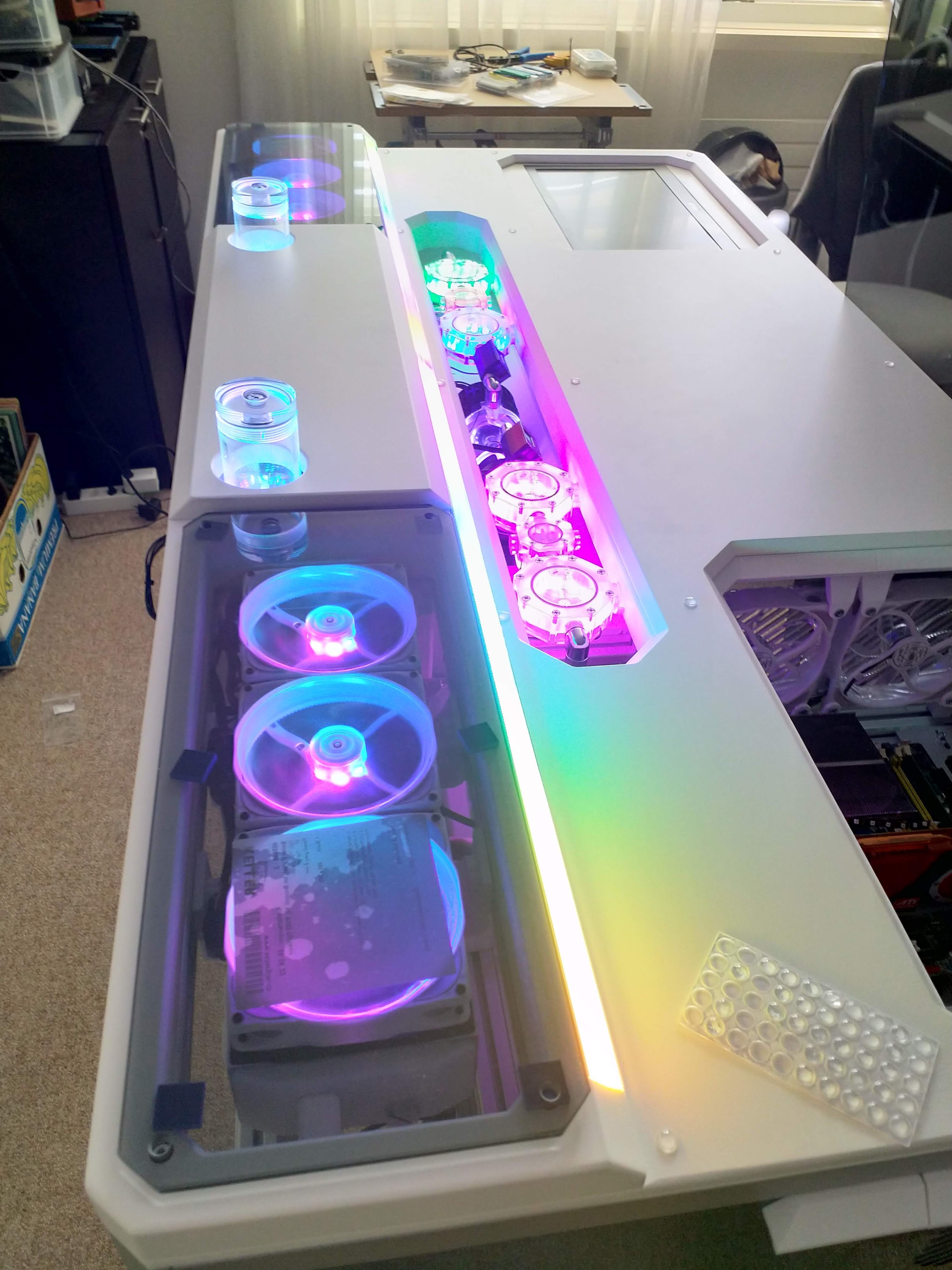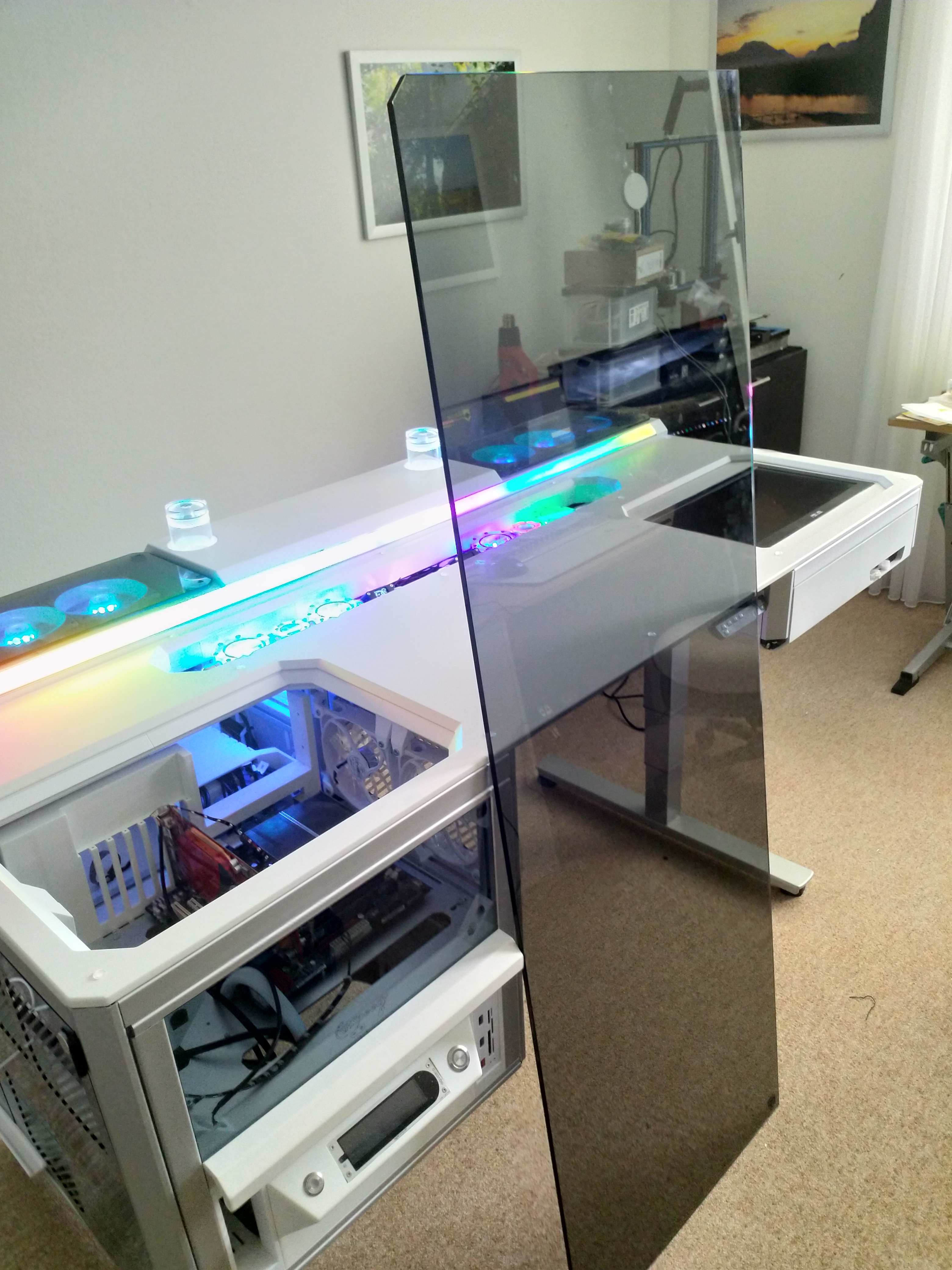 I finally received the tempered glass tops for the Desk PC. It took me quite some time to figure out the correct type of glass, required thickness and how to measure the dimensions in order to have it all understandable for the glass supplier. In addition I had to order some dampeners in order to place the glass correctly.
