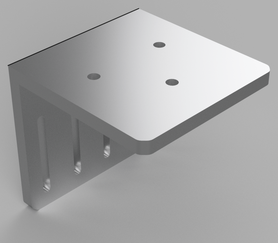 This L-Bracket was designed in order to connect the monitor lift to the main frame of the table. The basic idea is to have a flexible mounting point for a monitor lift. In addition, the table top itself remains unblocked and the middle top cover still can be removed. It is made of a thick aluminum sheet and bended into shape.